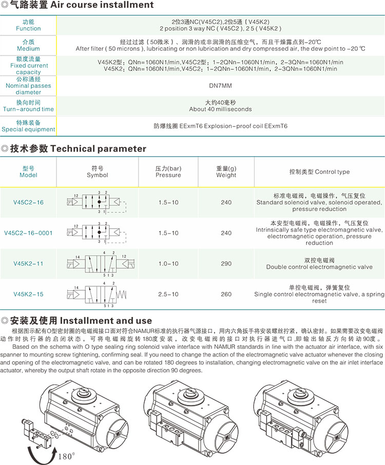 V45K2、V45C2系列電磁閥用于氣動閥門“開啟”或“關(guān)閉”的電控操作。符合NAMUR連接標準,直接安裝在氣動執(zhí)行器側(cè)面,無需管子連接。根據(jù)儀表控制系統(tǒng)需要選擇單電控或雙電控。二位五通電磁閥配雙作用式執(zhí)行器,二位三通電磁閥配單作用式執(zhí)行器。
