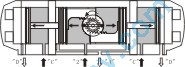 三位式氣動(dòng)執(zhí)行機(jī)構(gòu)提供了一種0°-45°-90°或者0°-90°-180°的操作方式。中間位置是由兩個(gè)輔助活塞移動(dòng)產(chǎn)生機(jī)械制動(dòng)來(lái)實(shí)現(xiàn)的。這個(gè)中間位置是可調(diào)的,如90行程的執(zhí)行機(jī)構(gòu)能提供20°、30°、50°、75°等中間位置。為了控制RP三位式氣動(dòng)執(zhí)行機(jī)構(gòu)的操作,按下述描述需要一套控制一系列氣源到執(zhí)行機(jī)構(gòu)的電磁閥系統(tǒng):(雙作用三位行程的氣動(dòng)執(zhí)行器輸出扭矩及安裝尺寸可參照對(duì)應(yīng)的標(biāo)準(zhǔn)型執(zhí)行器參數(shù).)