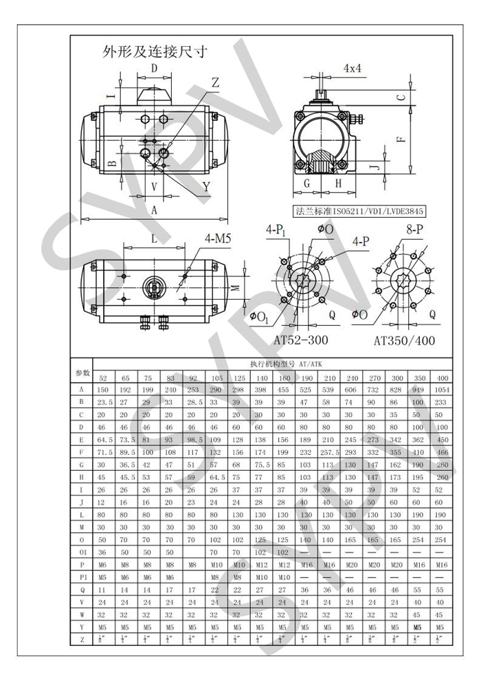 AT系例氣動(dòng)執(zhí)行器外形尺寸