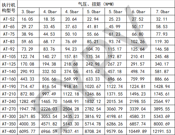 AT系例雙作用氣動(dòng)執(zhí)行機(jī)構(gòu)輸出扭矩