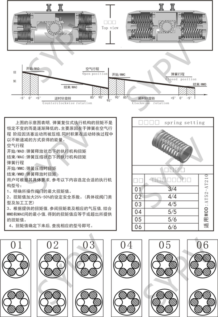 AT系例單作用氣動(dòng)執(zhí)行器機(jī)構(gòu)彈簧示意