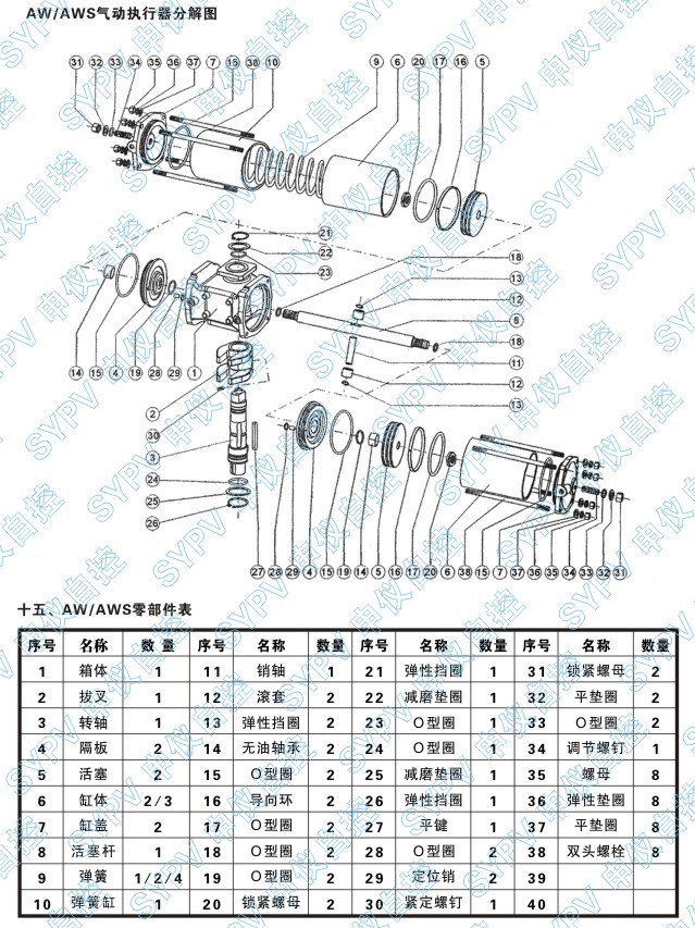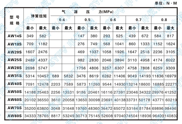 AW系列雙作用氣動執(zhí)行器輸出扭矩表 |