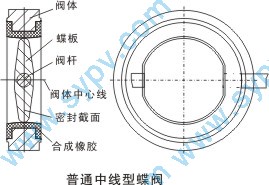 | 蝶板的回轉(zhuǎn)中心(即閥桿的中心)位于閥體的中心線和蝶板的密封面截面上。 閥座采用合成橡膠。關(guān)閉時(shí)蝶板的外圓密封面擠壓合成橡膠閥座,使閥座產(chǎn)生彈性變形而形成彈性力作為密封比壓保證蝶閥的密封。 | |